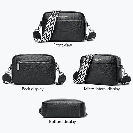 LOVVA PARIS™ Elegant Crossbody Bag – Stylish Black Leather Shoulder Bag with Geometric Strap
